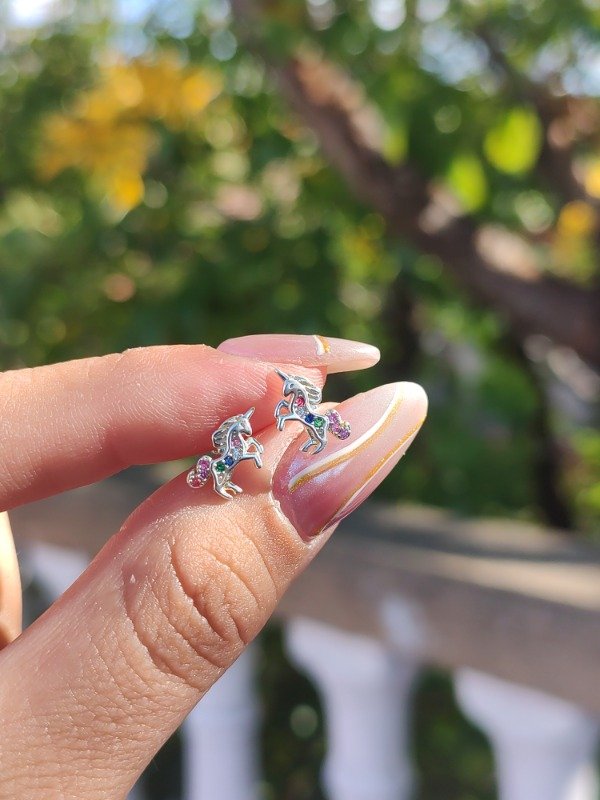 Aros pasantes unicornio multicolor