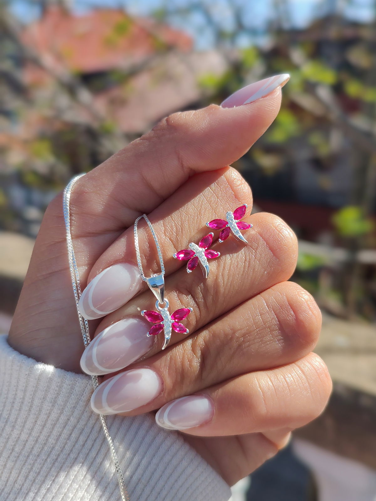 Conjunto libélula fucsia