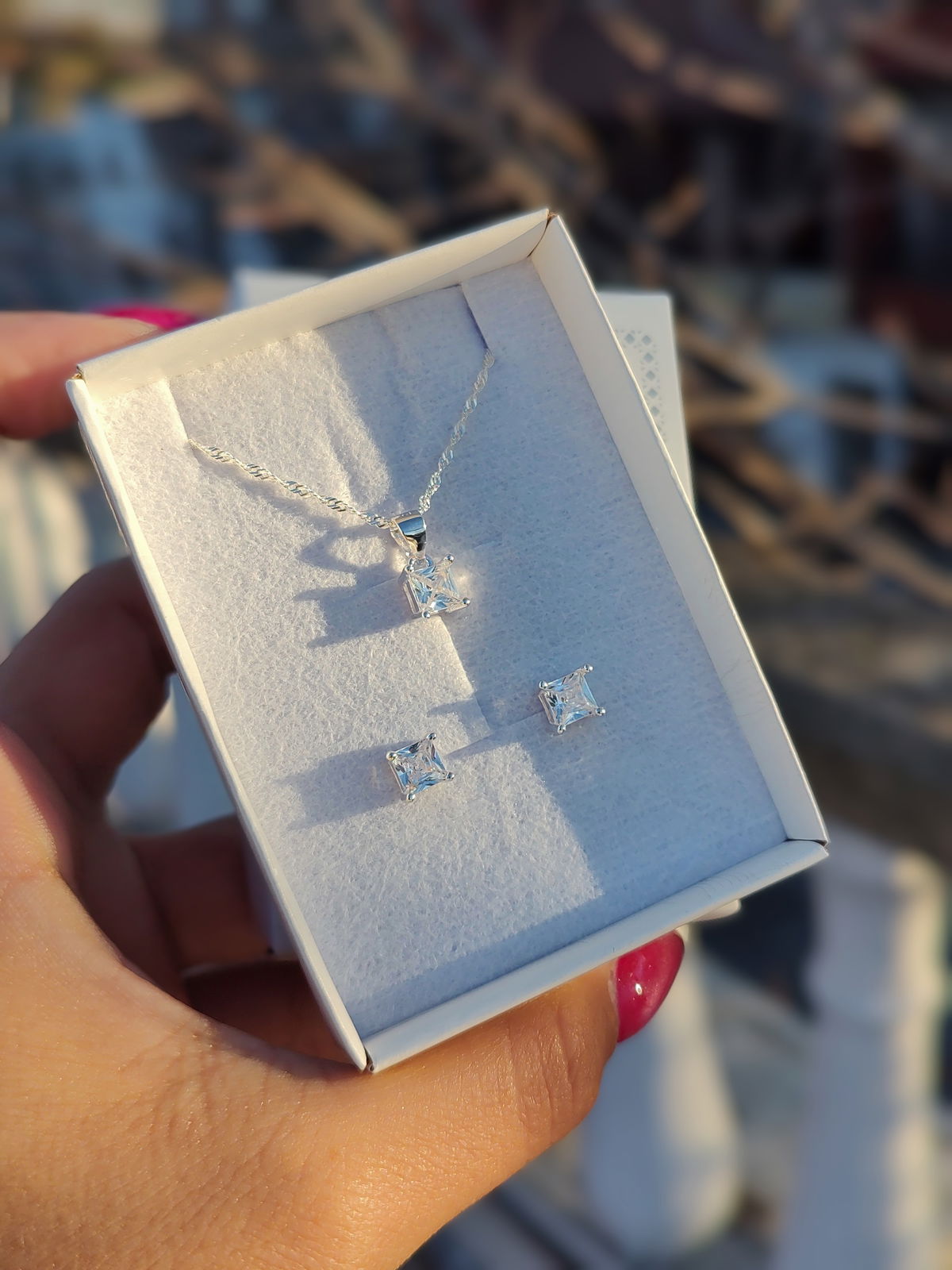 Conjunto cubic cuadrado (collar y aros)
