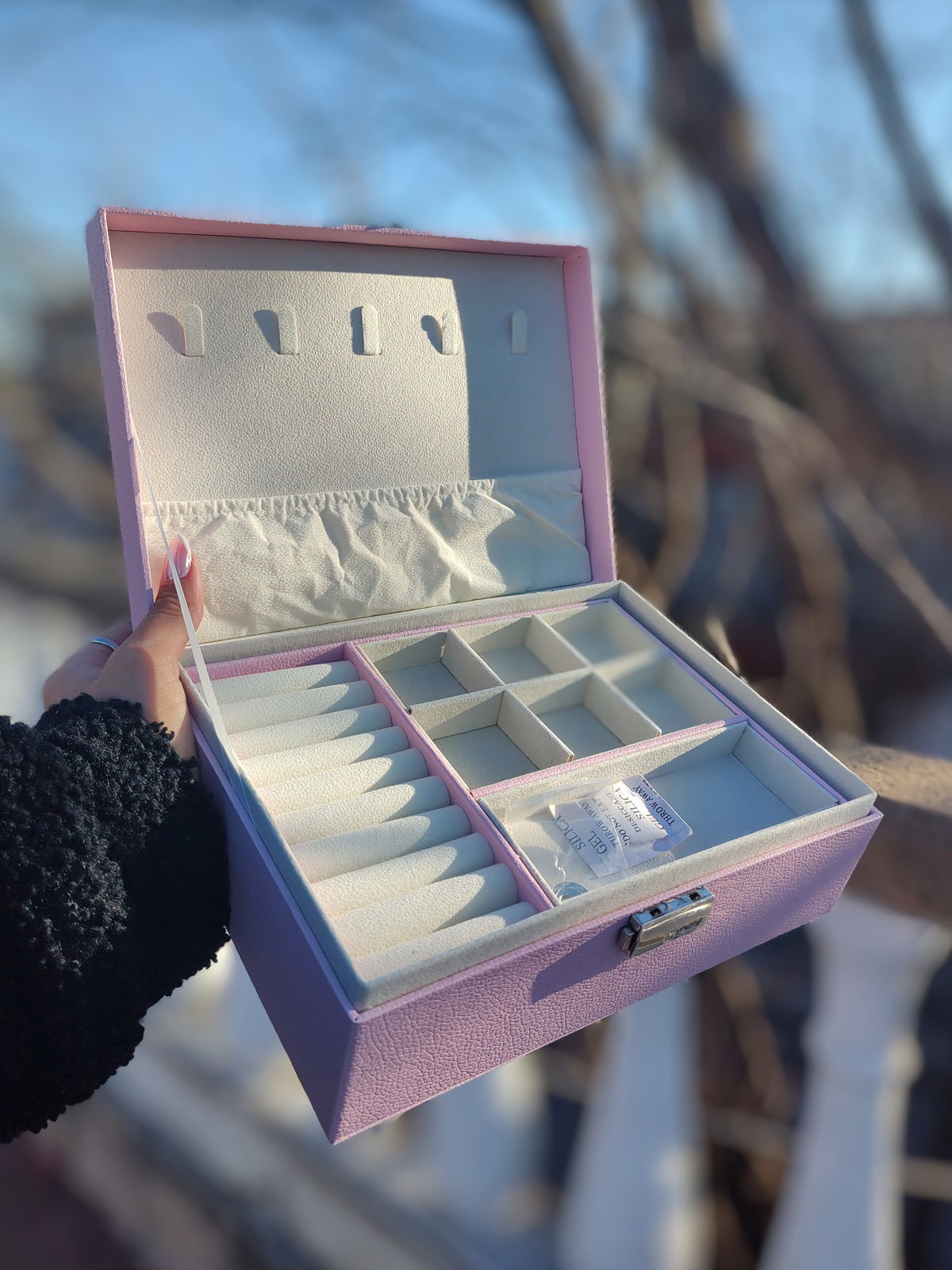 Cofre alhajero con llave (dos pisos) ROSA