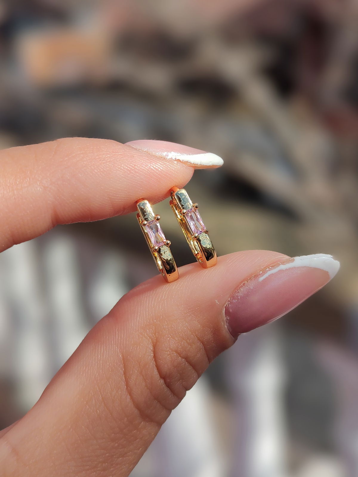 Argollitas Chloe gold rosita 14mm
