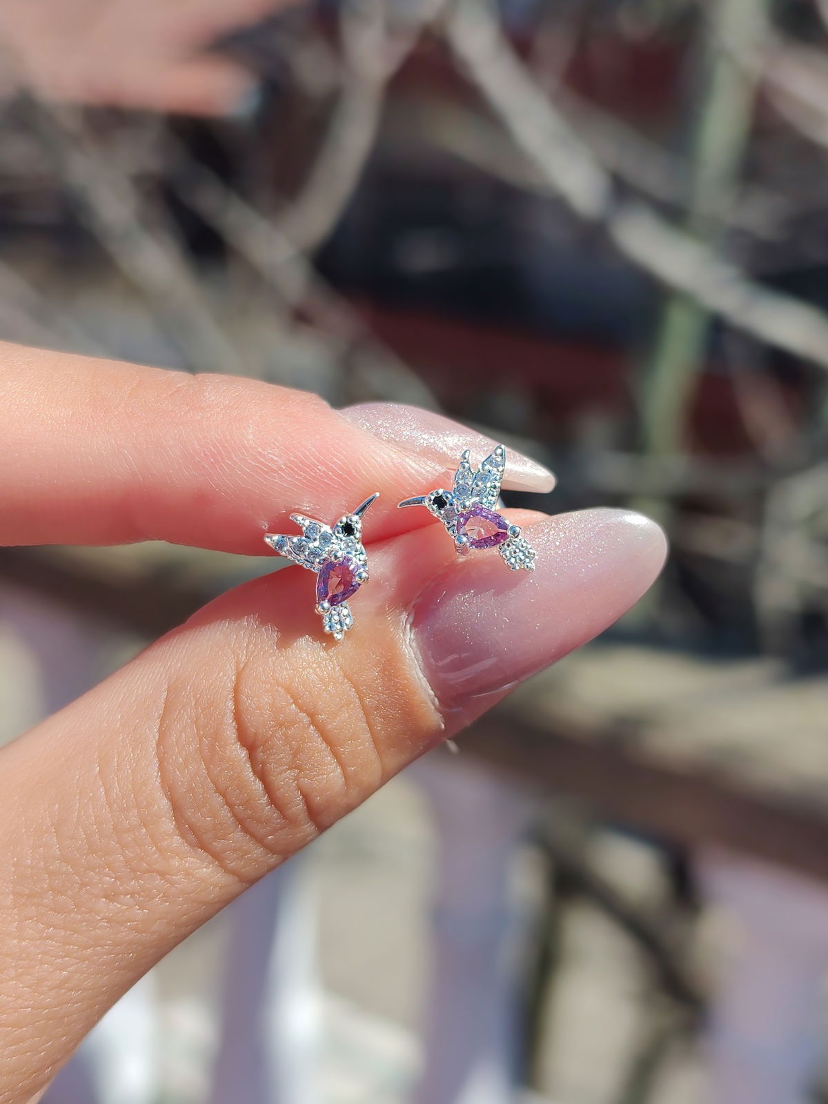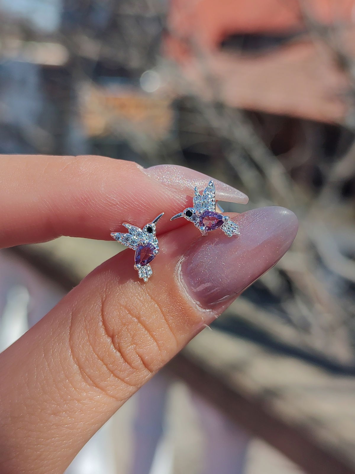 Aros pasantes colibrí lila